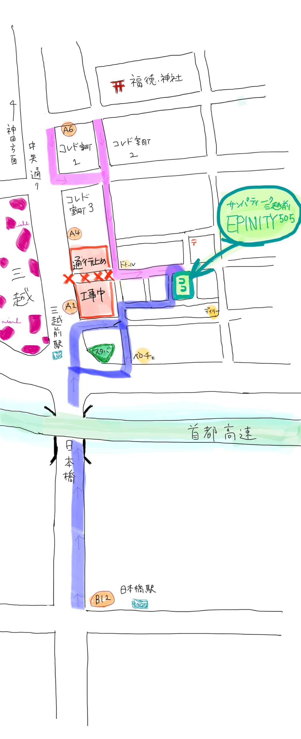 下記の地図をご参考の上迂回頂けます様、宜しくお願い致します。